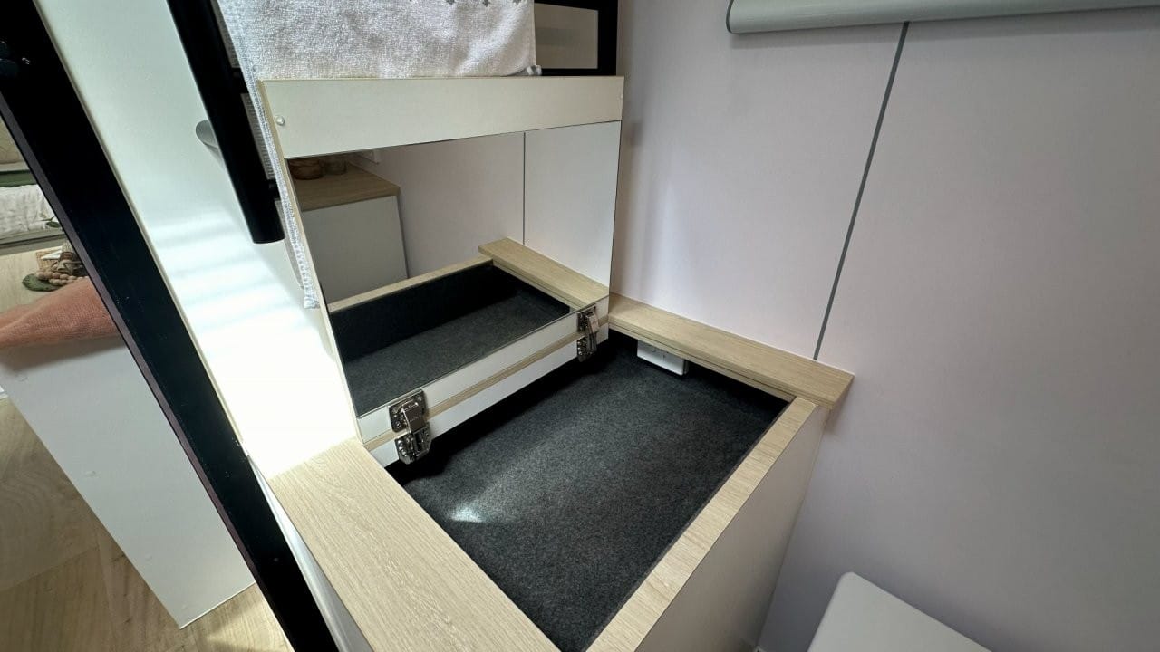 This van also has a built-in sealed storage box, secondary to the main tunnel boot, built into the body of the van to save the additional weight and expense of a box on the A-frame.